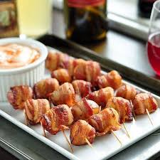 Party Recipe Bacon Wrapped Potato Bites With Spicy Sour Cream Dipping Sauce Recipe Potato Bites Food Party Food Appetizers