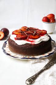 Semolina Creme Fraiche Plum Cake With Plum Caramel Sauce In The Kitchen With Scotty Plum Cake Caramel Sauce Food Processor Recipes
