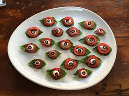 Tomato Basil And Mozzarella Eyeballs With Thin Sliced Black Olives On Nigella Lawson Living Kitchen Extra Large Platter Eye Shap Food Recipes Cooking Recipes