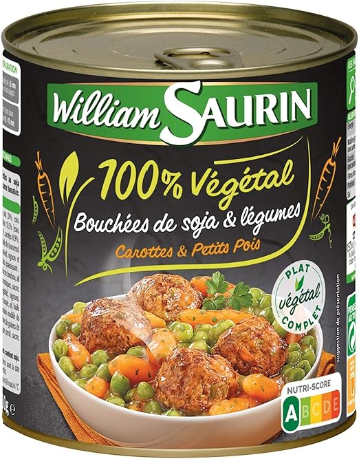 William Saurin Bouchees De Soja Et Legumes Carottes Et Petits Pois 100 Vegetal Amazon Fr Epicerie