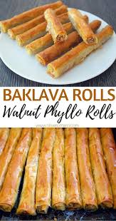Baklava Rolls Walnut Phyllo Rolls If You Love Baklava You Can Make This Easy Vegan Healthier Version At Home Walnut Baklava Recipe Cooking Recipes Recipes