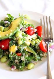 Kale Edamame Quinoa Salad Light Yet Filling So Good Made Quick Dressing Tossing Together Olive Oil Garlic Juice Fr Quinoa Salad Kale Kale Quinoa Salad