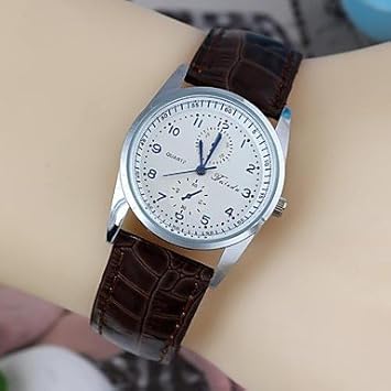 Cadran Rond Impermeable Bracelet En Cuir De Mode Amoureux Avec Pointeur Montres Brun 1pc Fr