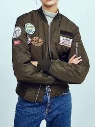 Army Green Cotton Badge Stickers Long Sleeve Bomber Jacket Bomber Jacket Patches Bomber Jacket Jackets
