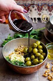 This Marinated Olives Recipe Is Like No Other Made With Pomegranate Molasses And Walnuts In A Very Short Time The Persian Food Marinated Olives Olive Recipes