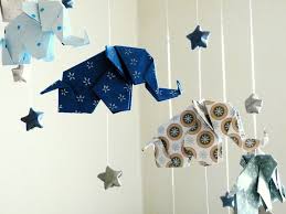 Origami Baby Mobile Elephants And Stars Blue Taupe White Etsy Origami Baby Mobile Origami Elephant Origami