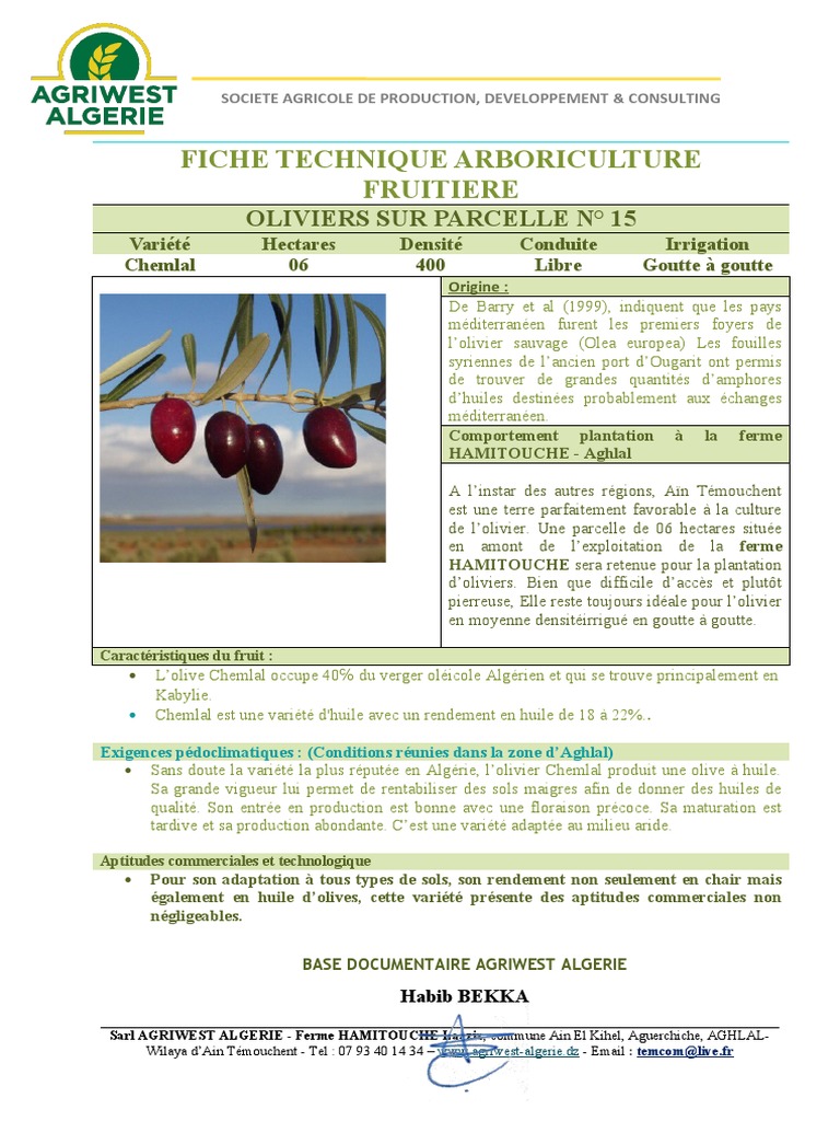 Fiche Technique Chemlal Algerie Agriculture
