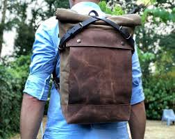 Waxed Canvas Rucksack Backpack With Roll Up Top And Oiled Etsy Canvas Rucksack Backpack Canvas Rucksack Leather