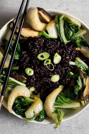 Black Rice Bowl With Bok Choy And Mushrooms Recipe Recipe Stuffed Mushrooms Rice Bowls Black Rice